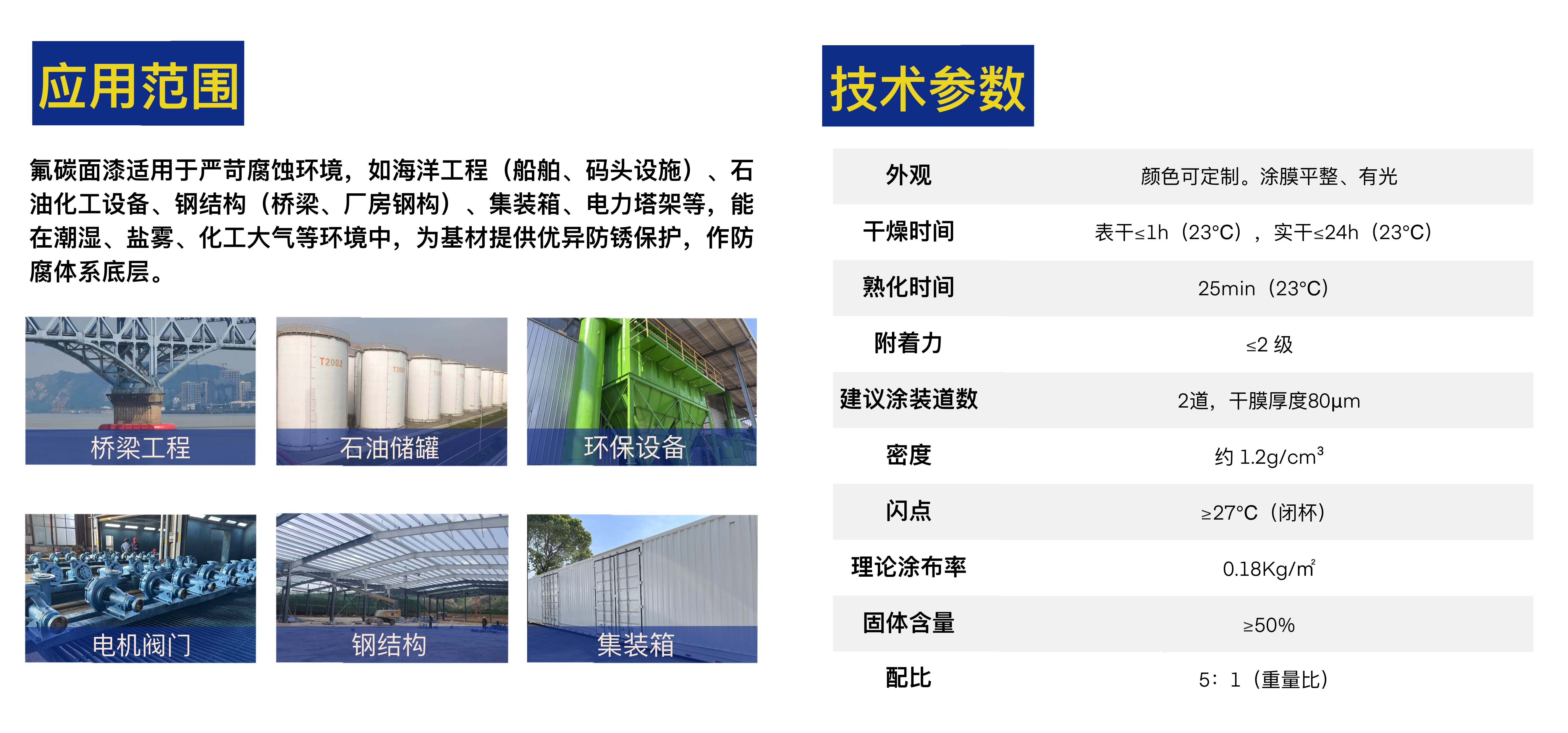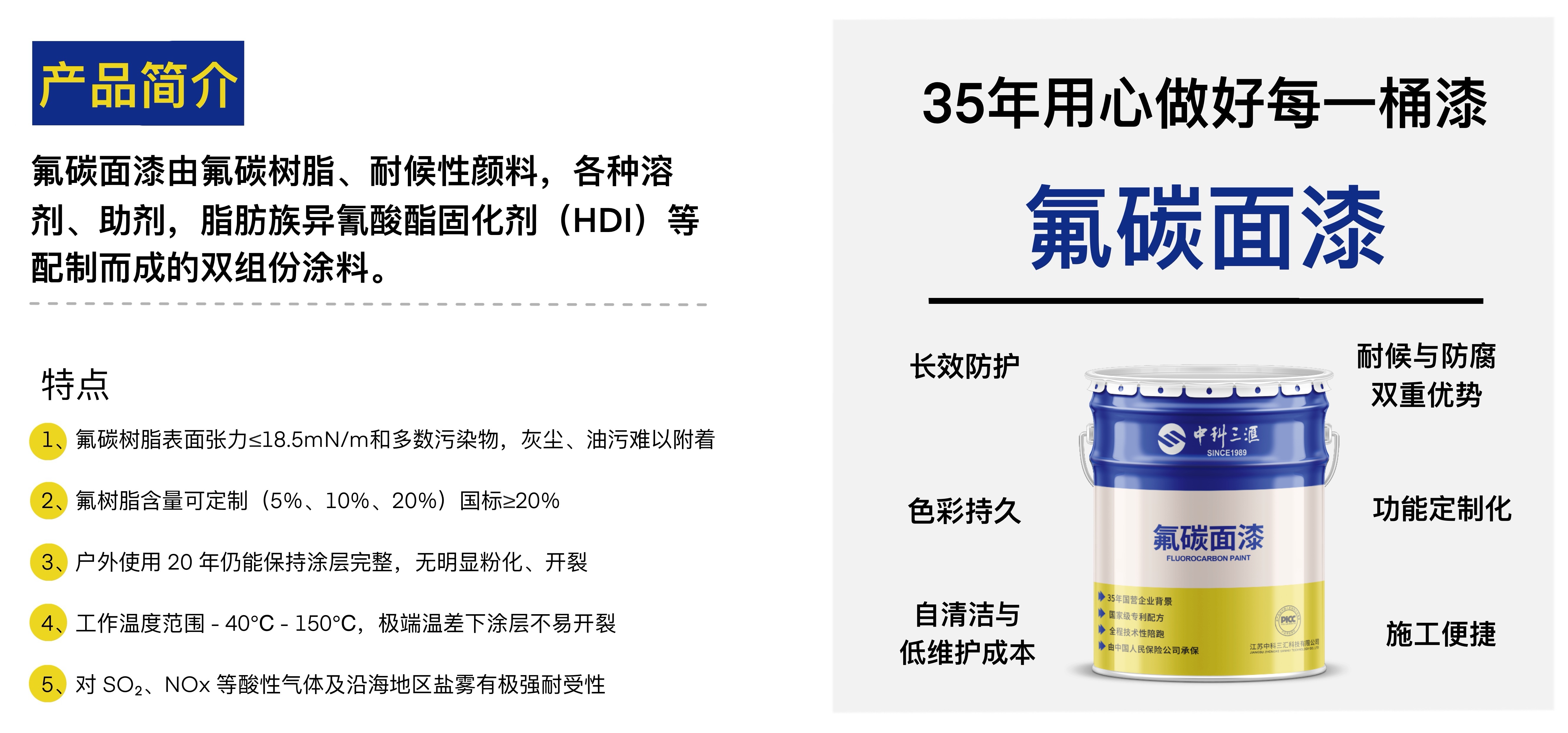 氟碳面漆由氟碳樹脂、耐候性顏填料,各種助劑,脂肪族異氰酸酯固化劑(HDI)等配制而成